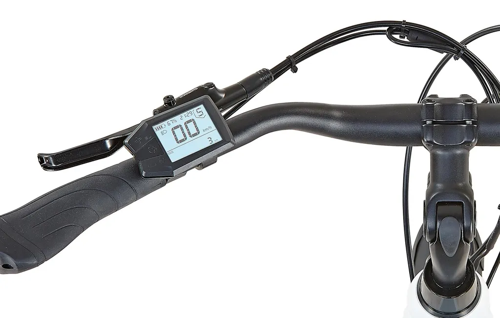 Aus dem Energiespeicher wird der verbaute 36 Volt Vorderradmotor von enovation mit genug Power für deine alltäglichen Wege versorgt. Die kraftvollen 250 Watt Leistung des Motors – bei einem maximalen Drehmoment von 30 Nm – fühlen sich bei der Fahrt fast so an, als würden Sie mit Ihrem neuen Geniesser E-Bike „gezogen“ werden. Auf dem LCD-Multifunktionsdisplay werden auf einen Blick alle Informationen zu Ihrem E-Bike System angezeigt. Am schwarzen Comfort-Lenker finden Sie die Bedieneinheit neben den geschraubten Ergo-Griffen und stellen Unterstützungsstufe ein, schalten die Beleuchtung an und aus und bedienen die integrierte Anschiebehilfe, die Ihr Prophete E-Bike mit 6 km/h neben Ihnen herfahren lässt.